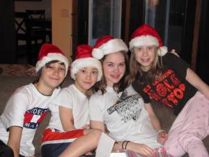A Merry Christmas was had by all. Santa left the kids a long letter, and a special gift for each one under the tree. Z was a maniac. He loved everything he opened, and represented the true magic of Christmas morning. Belle got exactly what she asked for, down to the letter. All I asked for was for her to stay a little kid longer. Adam was surprised to get what he asked for, we saved it for last( i don’t know why parents try to be so tricky and terrible…we just do) He CRIED. Don’t tell him I said that, it was nice to see a truly grateful heart in a 12 year old body. And Sidney, well, Santa managed to pull out a nice surprise for her too, even though he wasnt quite sure where she was going to be( he is good that way). The butcher had all he has ever wanted…..sitting on the couch wearing santa hats….his children, all of them. And socks, of course.