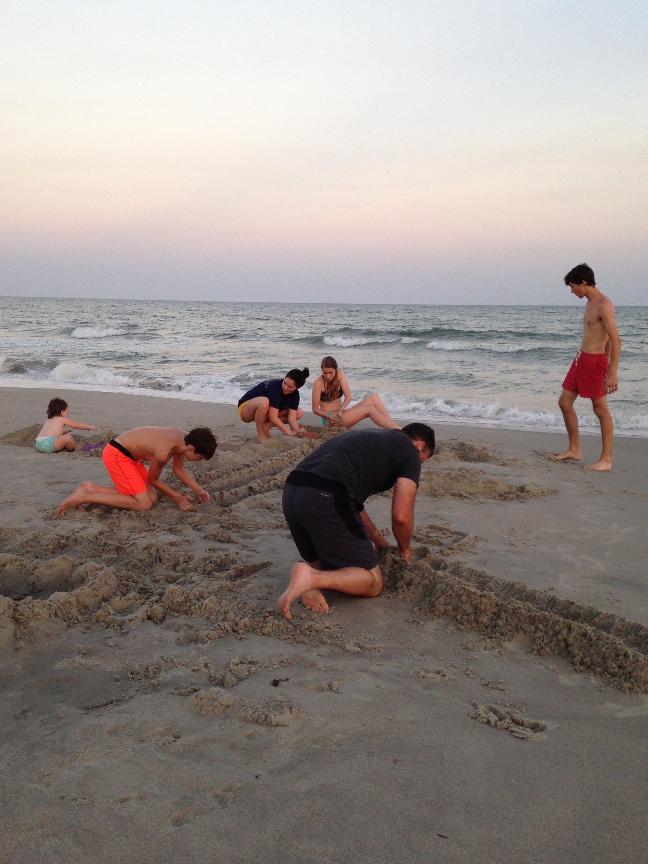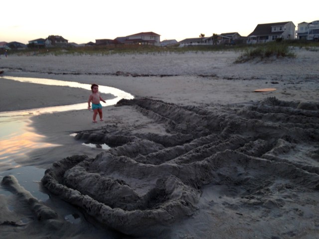 For as long as I can remember Thomas plays the same game with the kids at the beach. They build a sand castle , they create walls around it, moats and towers . Sometimes there is seaweed to adorn the corners, maybe shells . The point of this game is to work as hard as you can to build a structure that the tide doesn’t take down. The kids run around like engineers calling out -we have a breach on the front wall!! And then they build it back up. Sometimes , the tide is too strong, or the castle has been built to close to the sea, and we lose it altogether. I never knew how big a deal, how important a memory this was , until this year. Man child suggested we go down one evening and build… They threw themselves into the sand castle like it was the most important thing in the world. Everyone doing their own jobs. And this year we introduced the newest member of the family to our tradition.